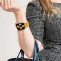 【Personalized Design】The stretchable and adjustable watch band is upgraded. Stylish stainless steel loop buckles design allows you to adjust the size of the loop strap as you wish. With the strong super stretchy elastic,easy to put it on or take it off.Suitable for wrist size 5.2"-8.5". Making it a great alternative to Silicone bands for exercise.